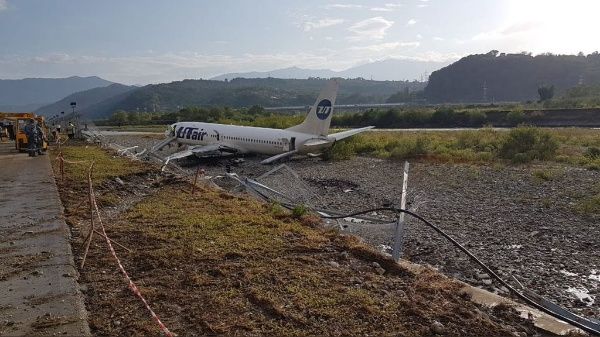 Momentos después del aterrizaje, el avión se salió de la pista y cayó en el cauce de un río próximo a orillas del mar Negro, donde perdió un ala y parte del tren de aterrizaje, y se incendió la turbina izquierda.