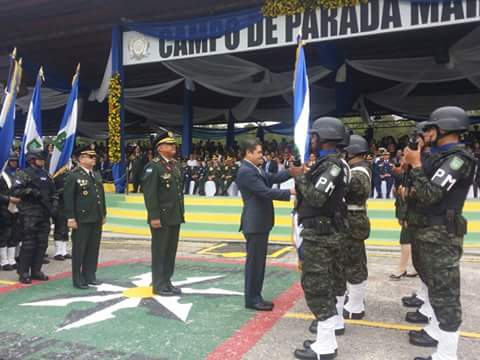 Posteriormente el mandatario otorgó los respectivos Estandartes a los dos nuevos batallones con que contará la Policía Militar del Orden Público (PMOP) los cuales estarán ubicados uno en Tegucigalpa y el otro en la Ciudad de San Pedro Sula bajo el mando de la Secretaría de Seguridad.
