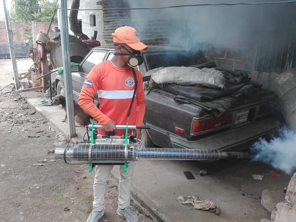 Tegucigalpa: Miembros de las instituciones que conforman el Sistema Nacional de Gestión del Riesgo (SINAGER), en conjunto con la Comisión Permanente de Contingencias (COPECO), y organizaciones estatales, desarrollaron desde tempranas horas de este viernes, operativos de fumigación en varias viviendas a nivel nacional, esto mediante la aplicación de BTI en pilas y recipientes almacenadores de agua, con la finalidad de erradicar los criaderos del mosquito Aedes Aegypti, así mismo se realizará limpieza de solares.
