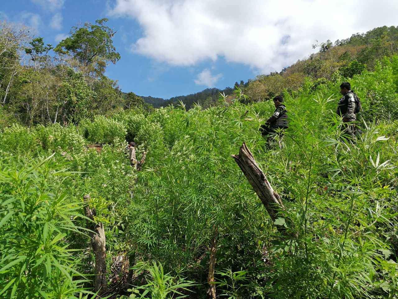 Autoridades policiales aseguran que ésta plantación podría ser el mayor hallazgo de plantíos de marihuana descubiertos hasta el momento en Honduras.