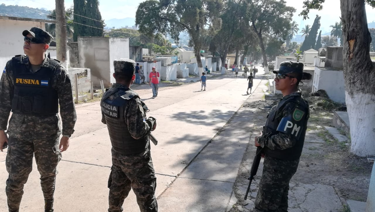 Tegucigalpa: Desde horas muy tempranas de éste jueves, la Fuerza de Seguridad Interinstitucional Nacional (FUSINA), en conjunto con la Policía Militar del Orden Público (PMOP), mantienen presencia permanente en los diferentes cementerios, tanto de la capital, como en el resto del país.