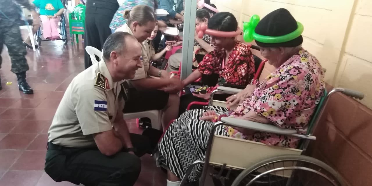 El General García Maradiaga luego de hacer entrega de la Ayuda humanitaria, expresó “queremos contribuir con un poco de luz para engrandecer la luz que alumbra ésta casa, damos gracias a Dios por la oportunidad que nos da como FFAA de poder contribuir con ésta noble obra, proyección que realizamos a Nivel Nacional, ‘Dios Bendiga a nuestros ancianos’, “.